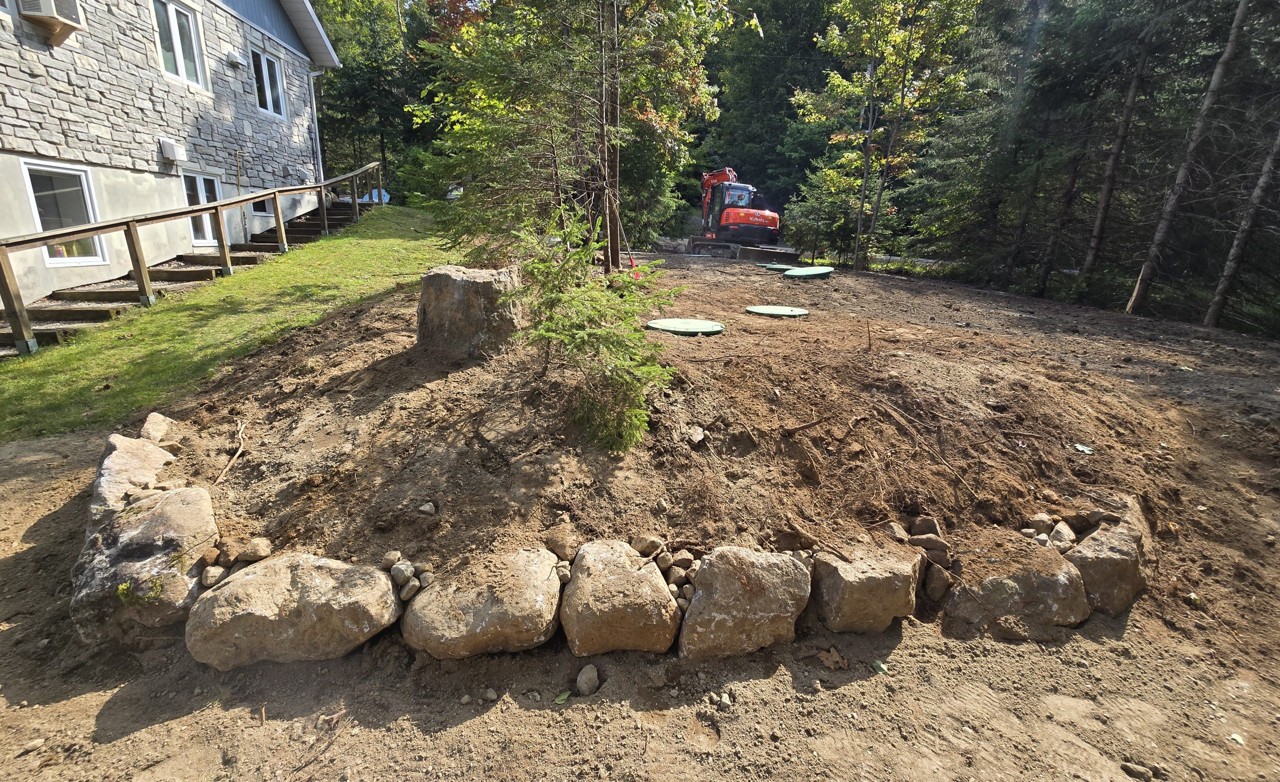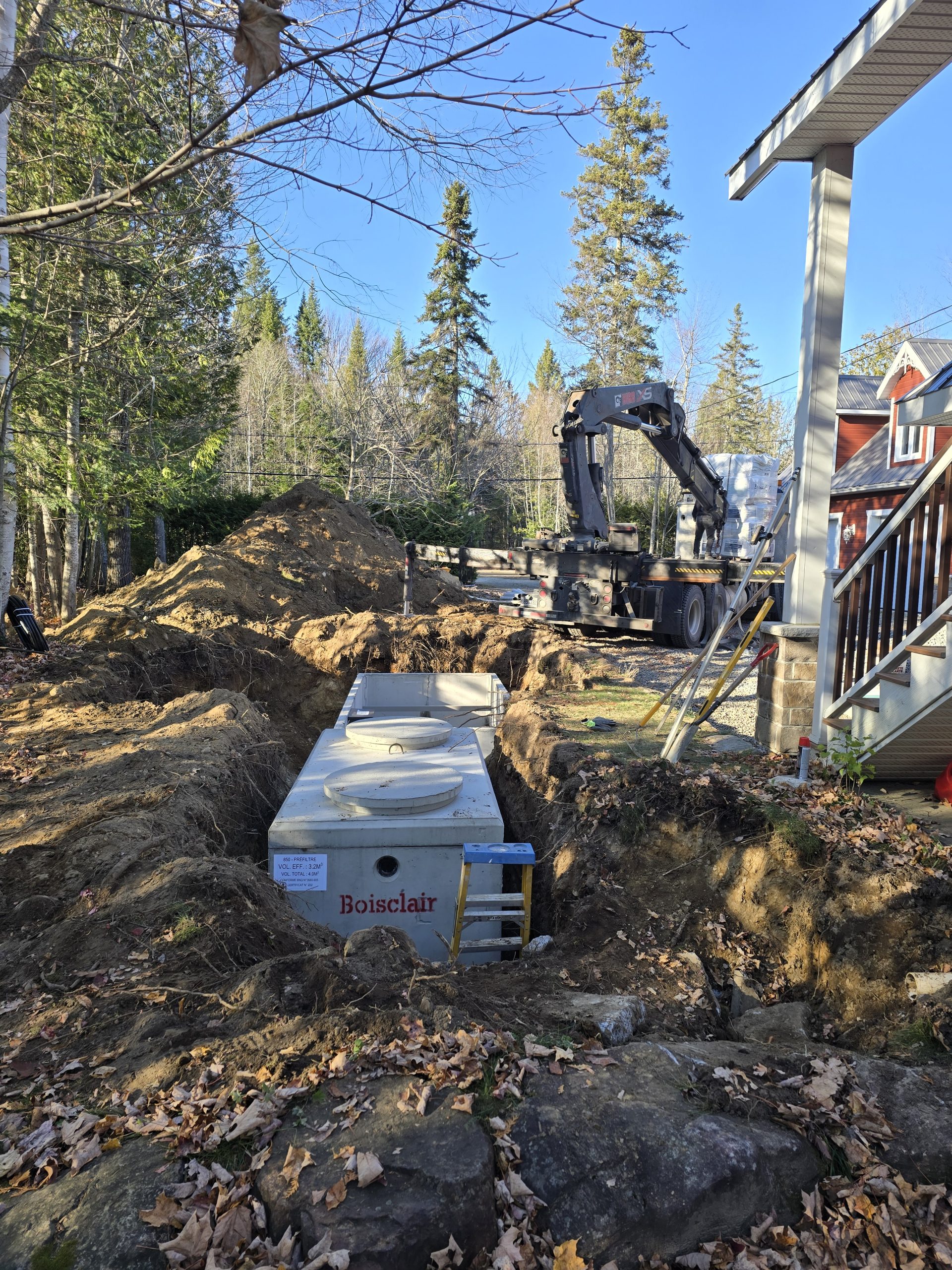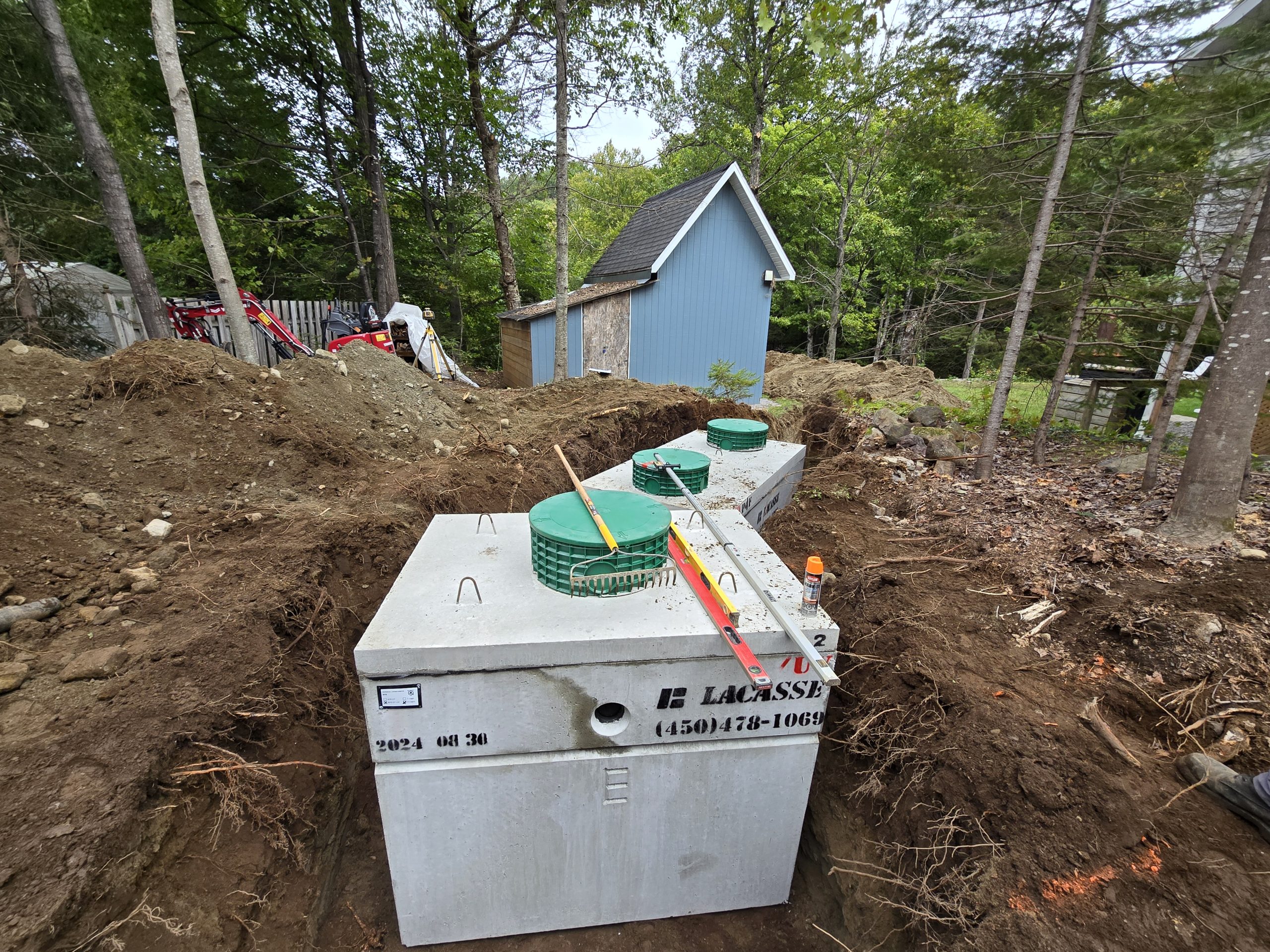 Bionest SA-3 avec pompe de relevage et petit champs de polissage.